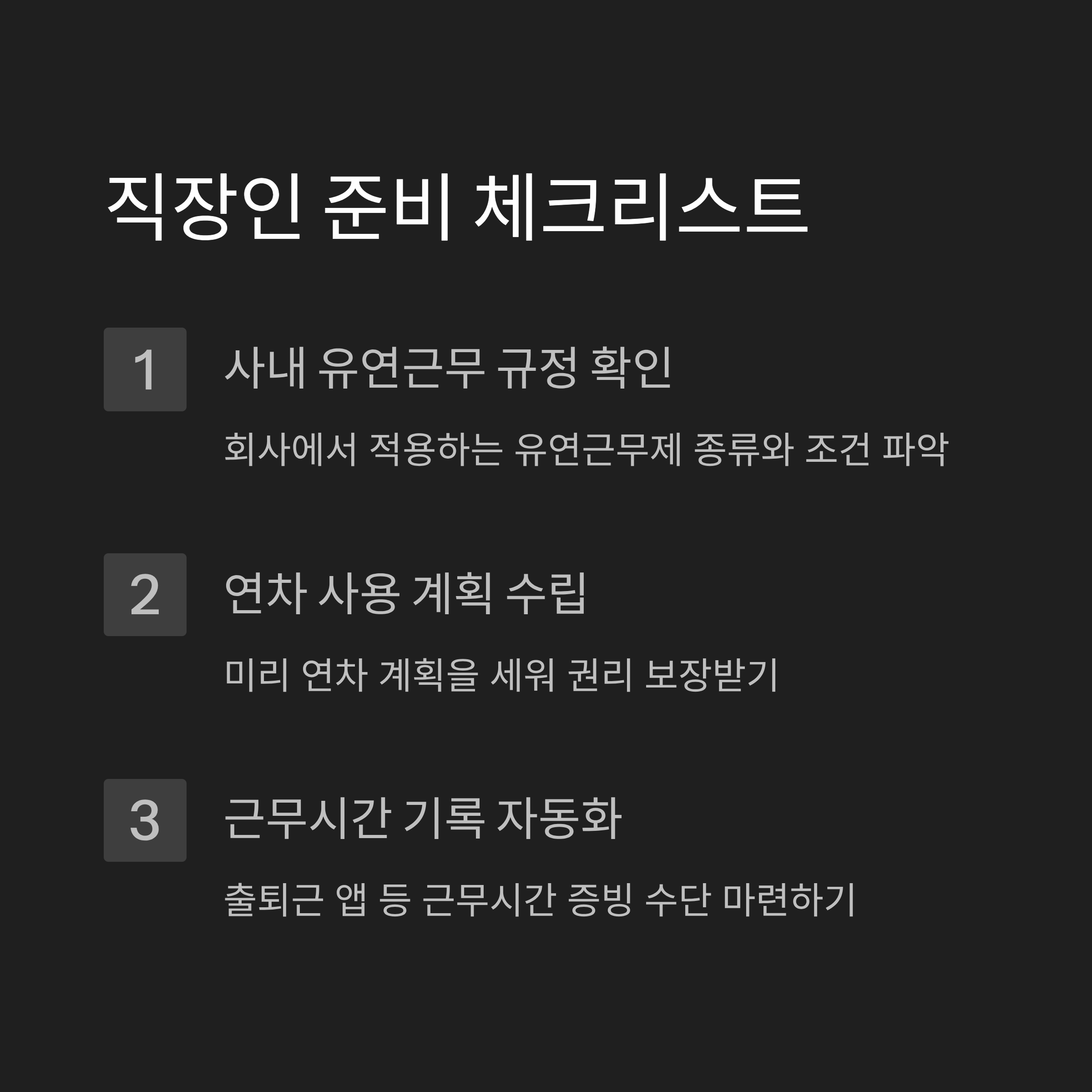 - 사내 유연근무 규정 여부 확인