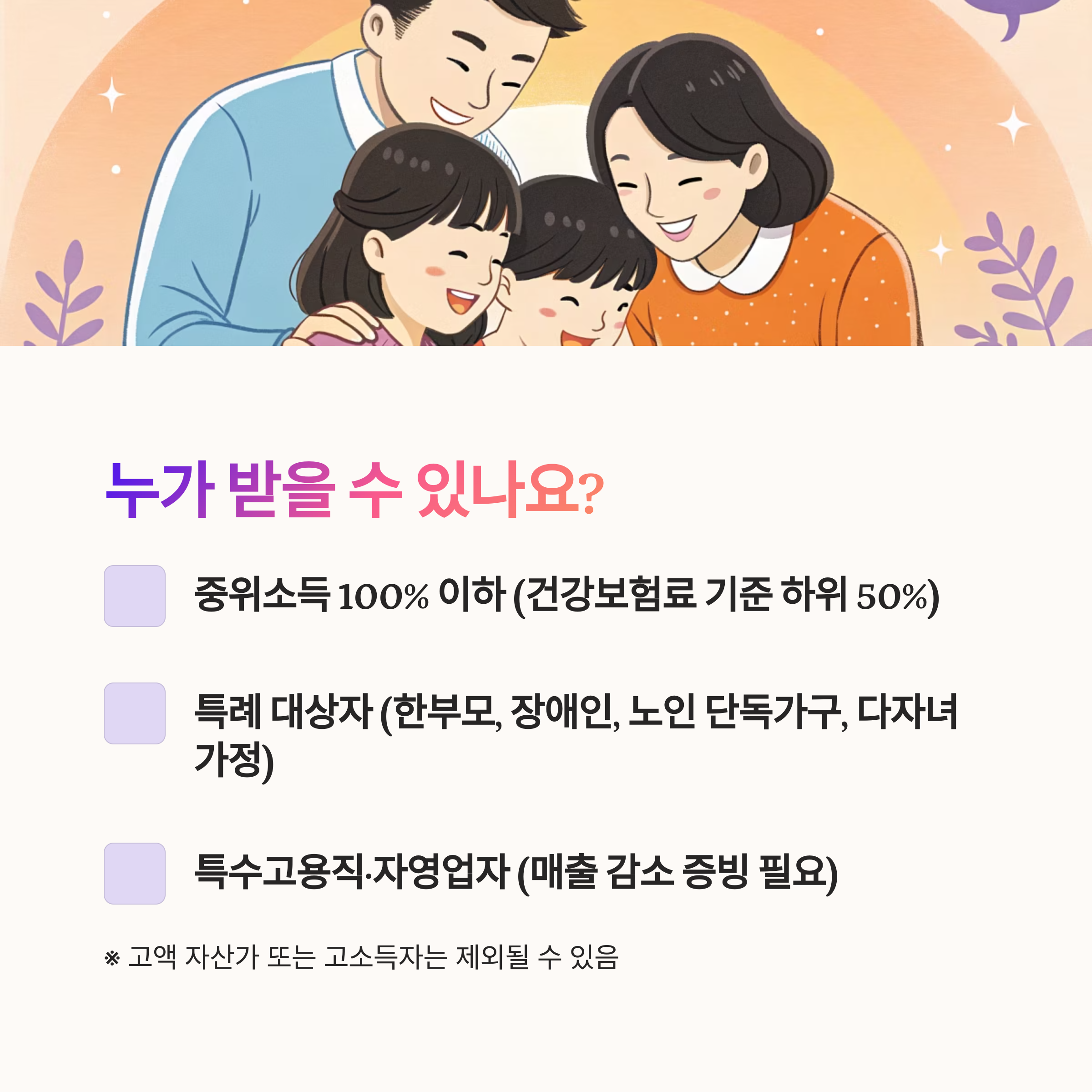 ※ 단, 고액 자산가 또는 고소득자는 제외될 수 있음