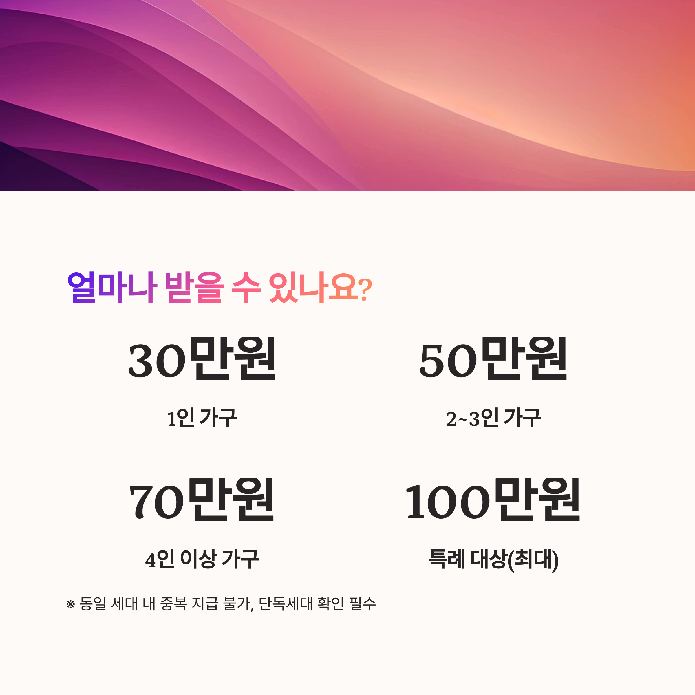 ※ 동일 세대 내 중복 지급 불가, 단독세대 확인 필수