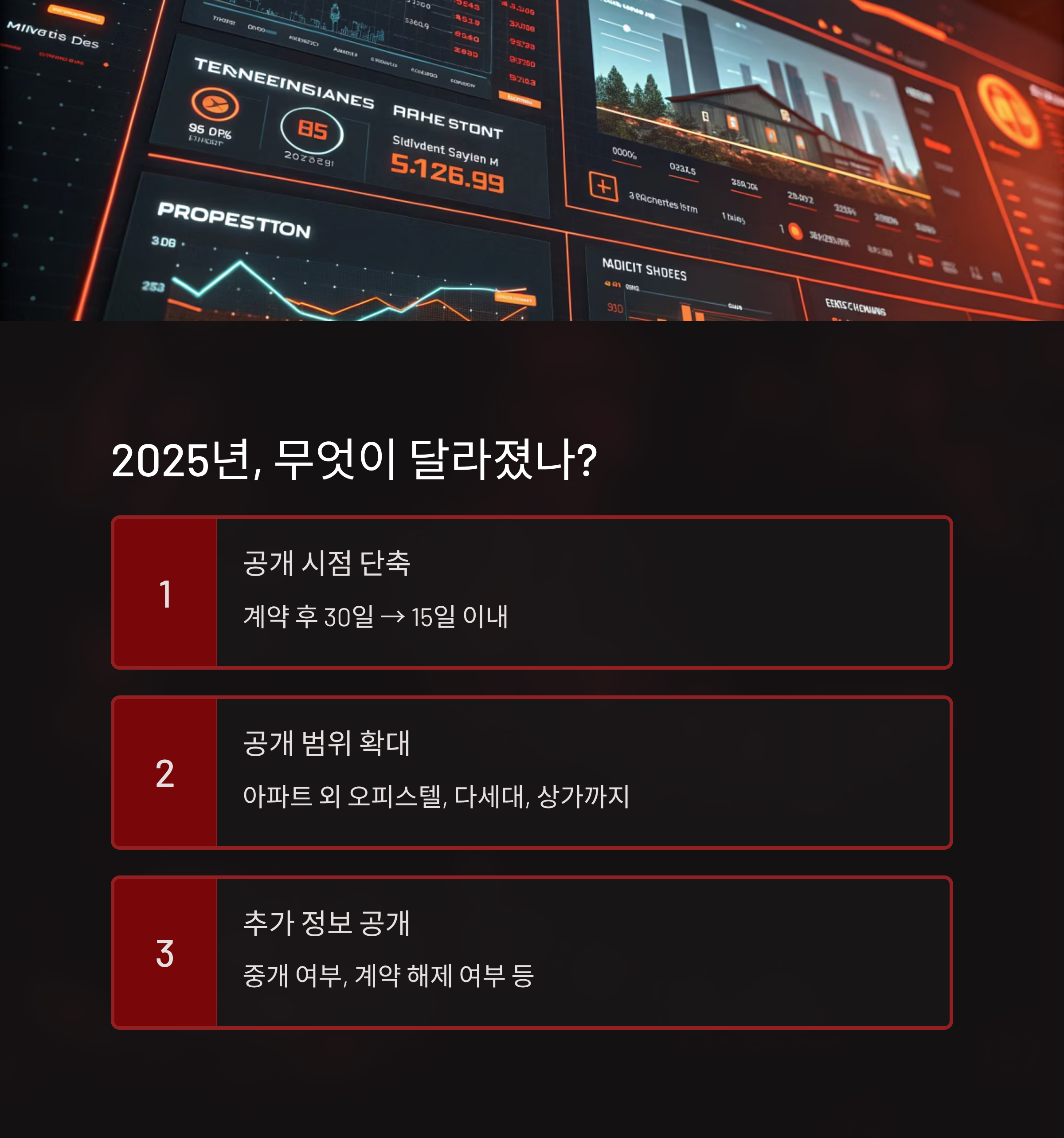 | 공개 시점 | 계약 후 30일 이내 | 계약 후 15일 이내로 단축 |