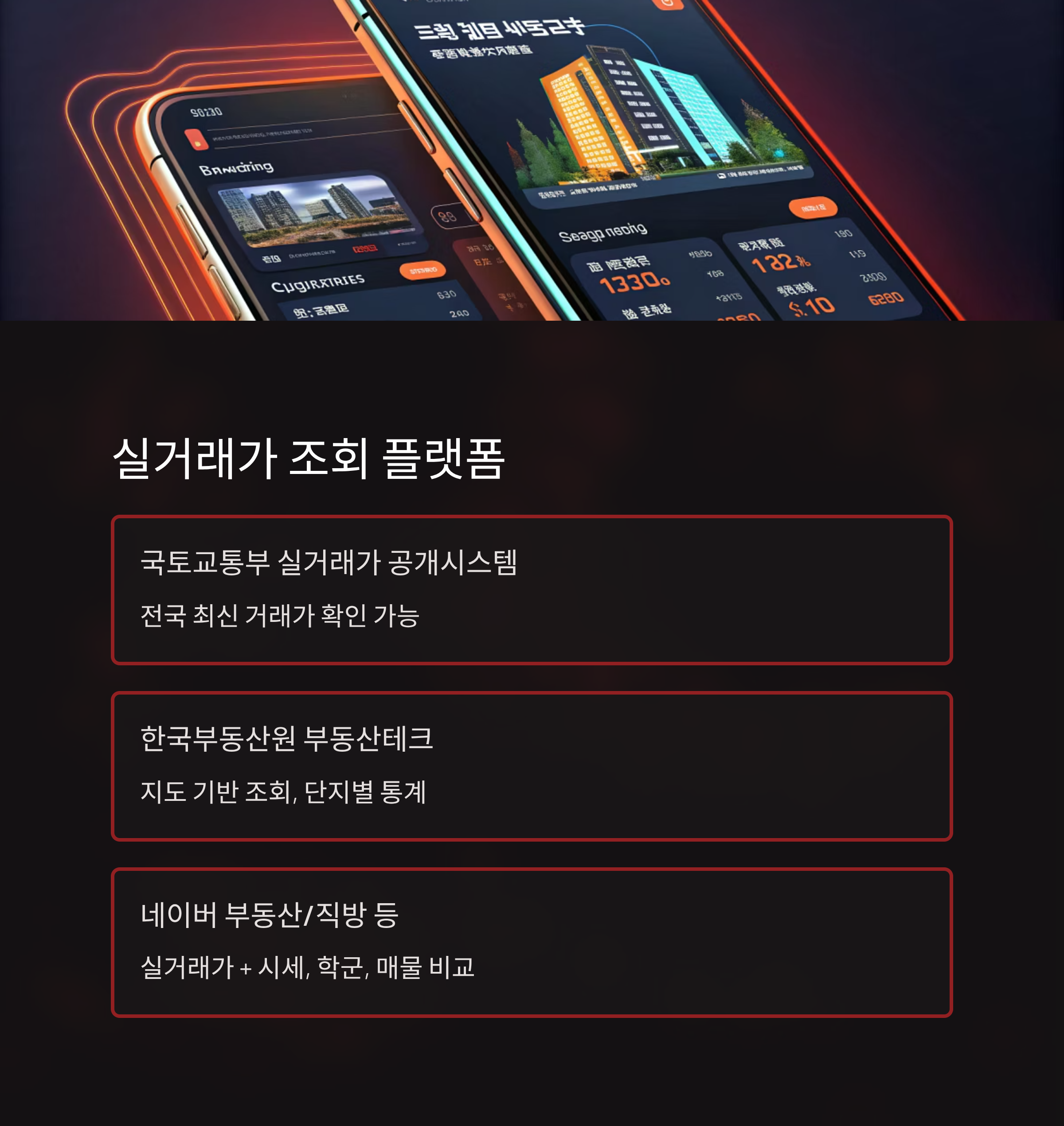 | 네이버 부동산/직방 등 민간앱 | 실거래가 + 시세, 학군, 매물 비교 |