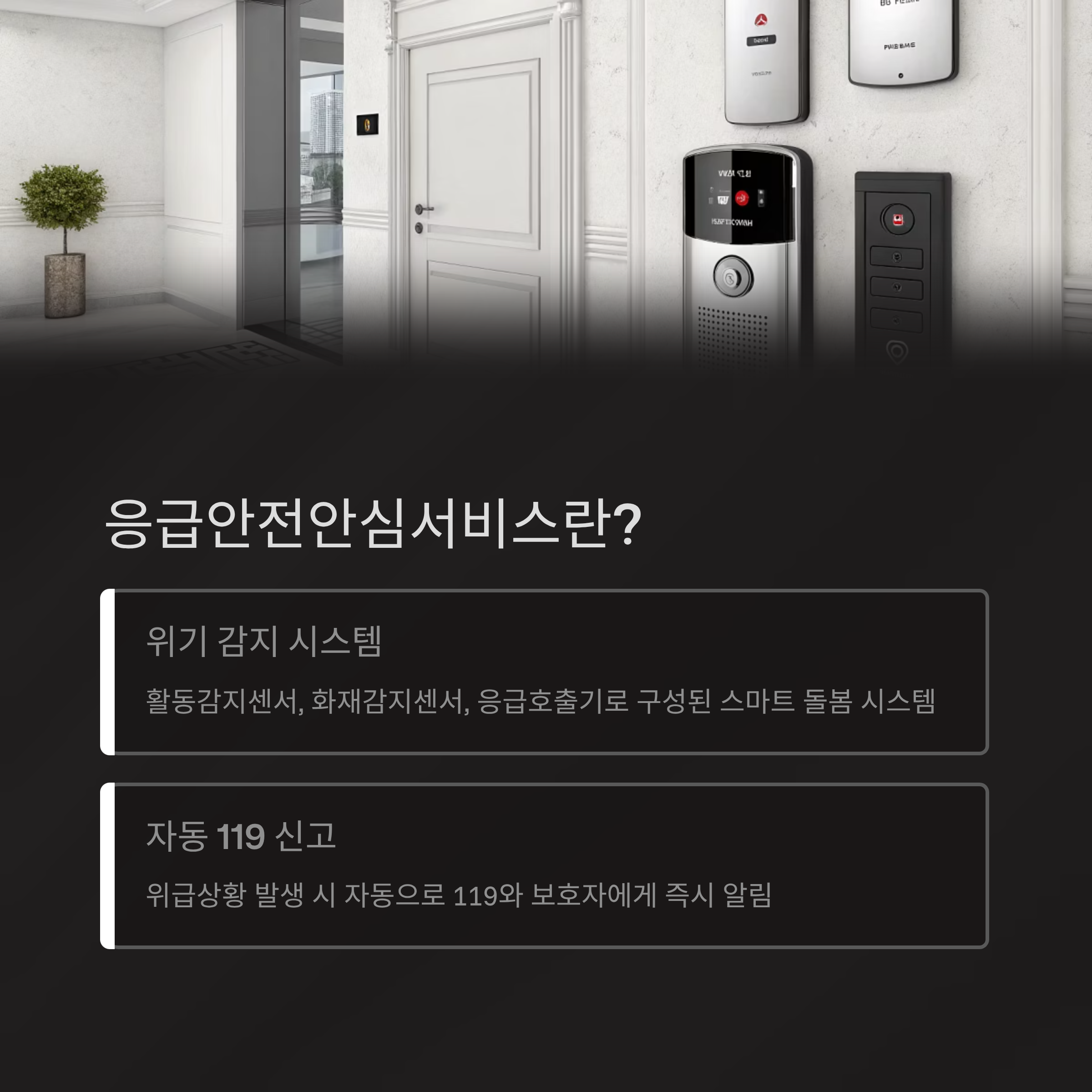 | 화재감지 | 연기 또는 온도 상승 감지 시 즉시 119 통보 |