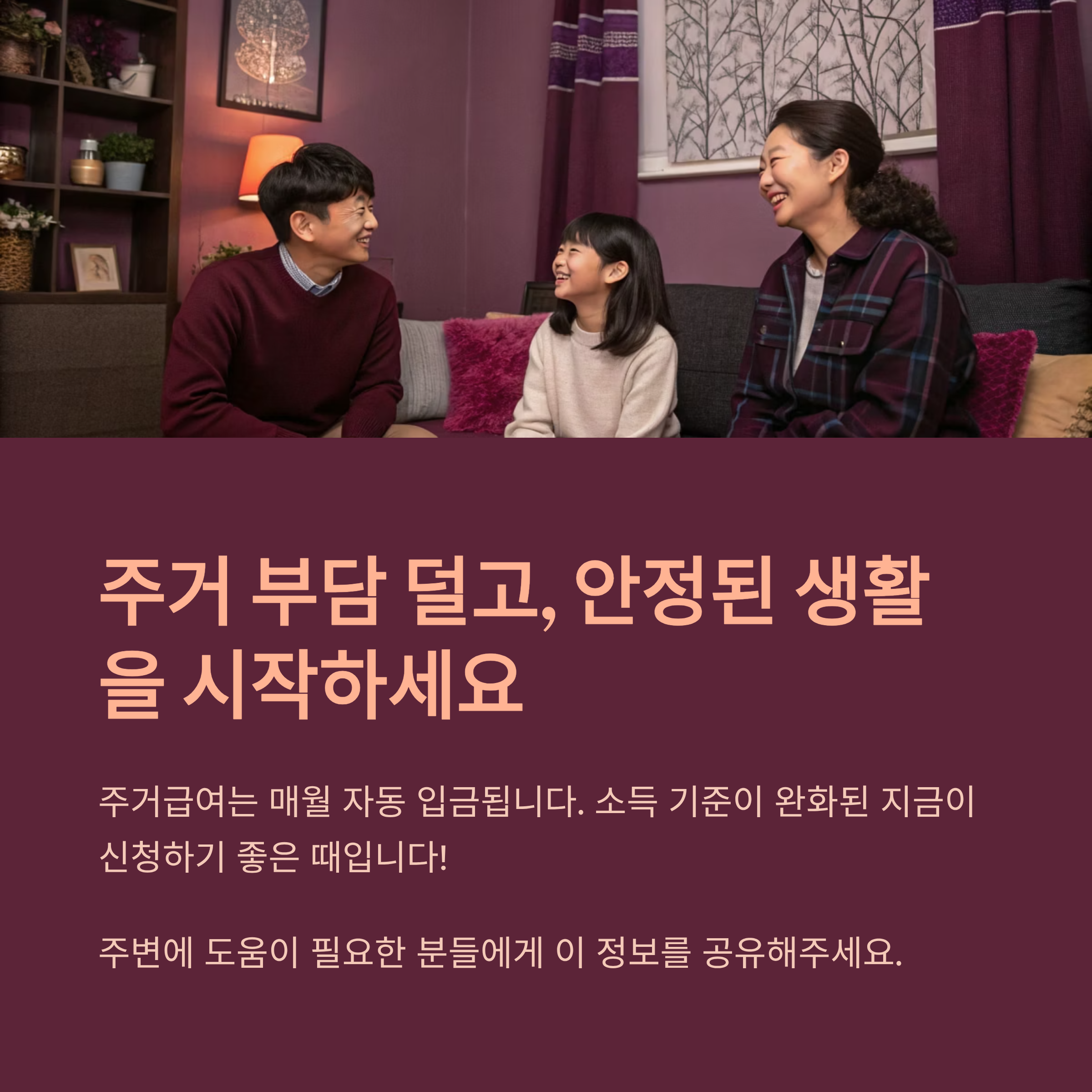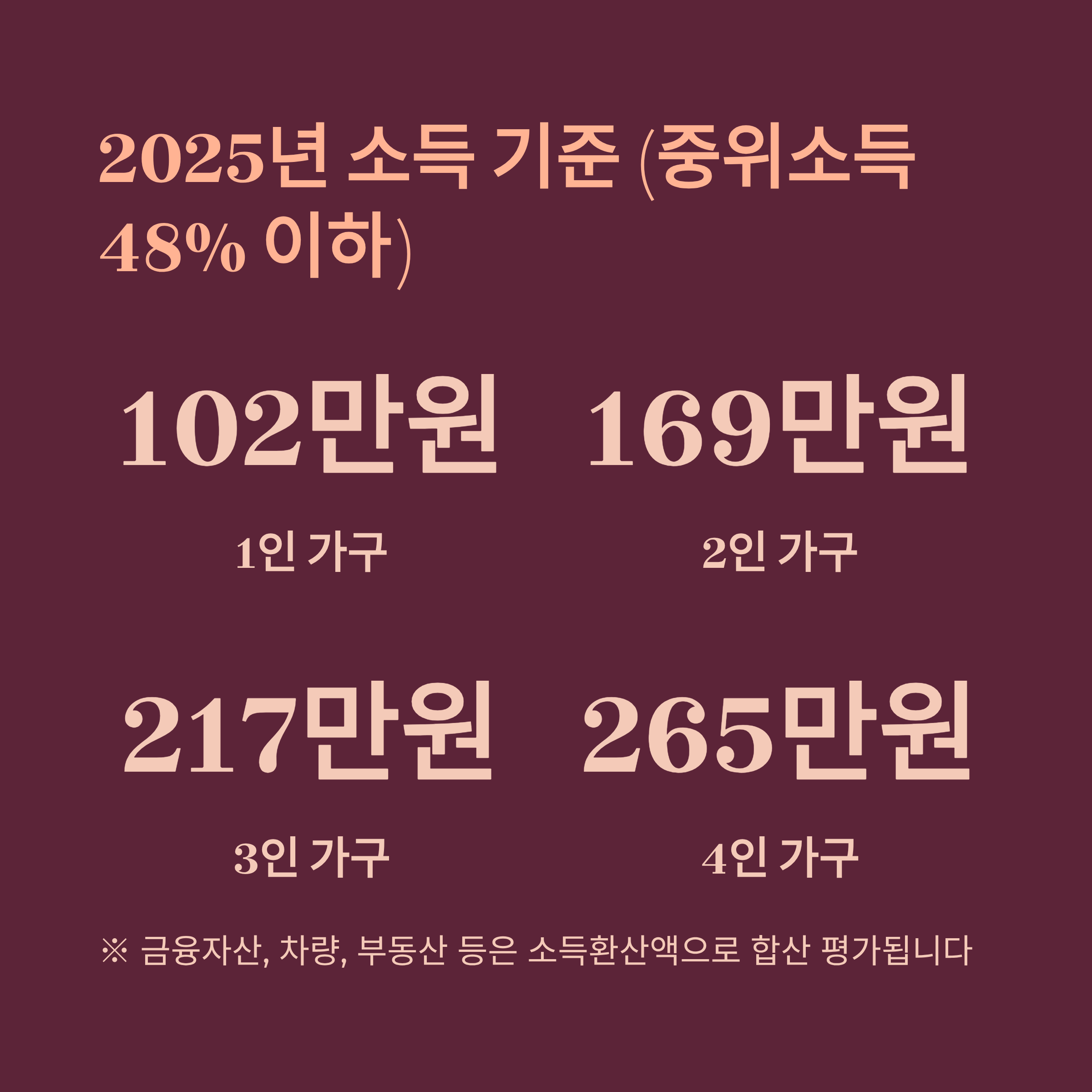 | 소득 기준 | 중위소득 47% 이하 | 중위소득 48% 이하로 상향 |
