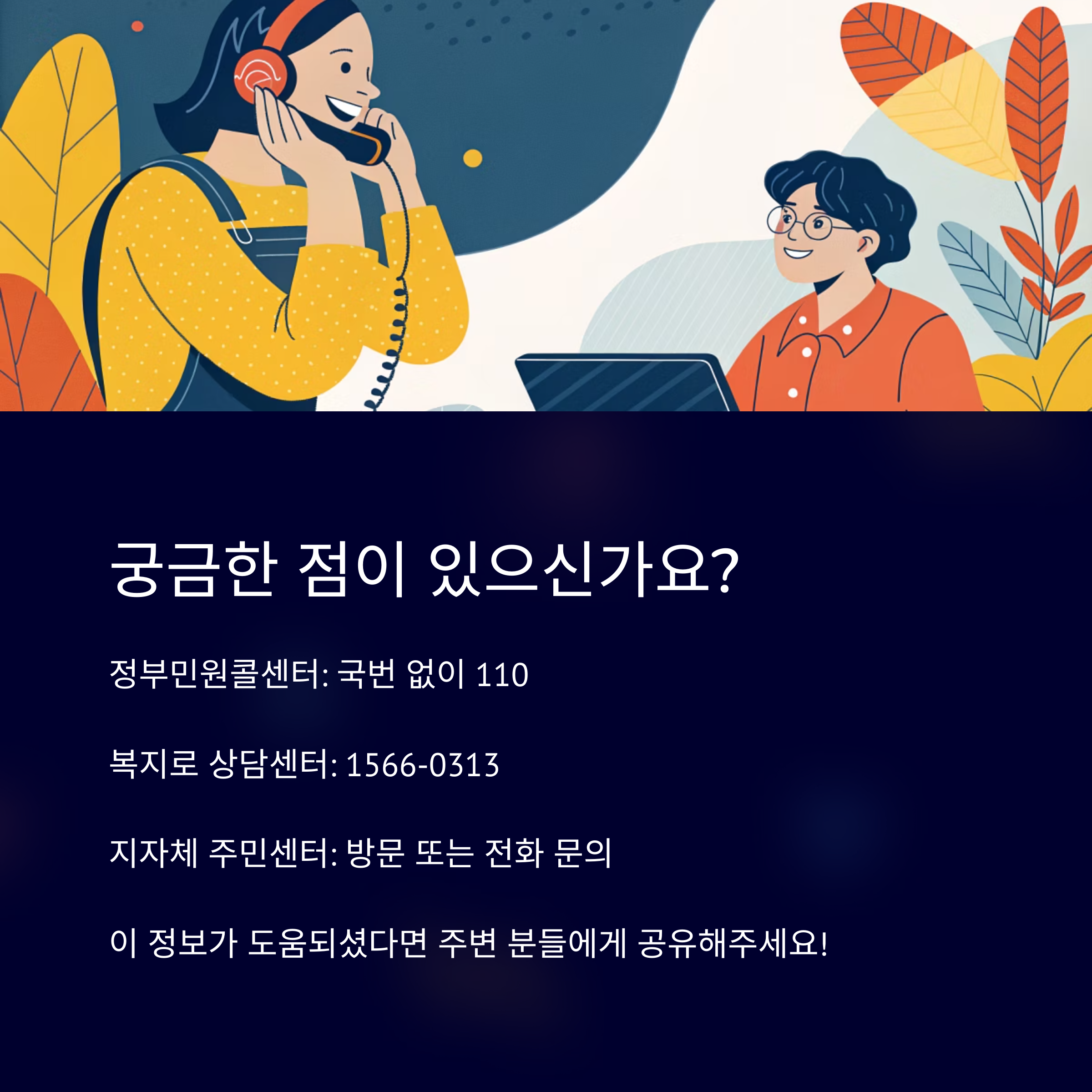 | 지자체 주민센터 | 방문 또는 전화 문의 |