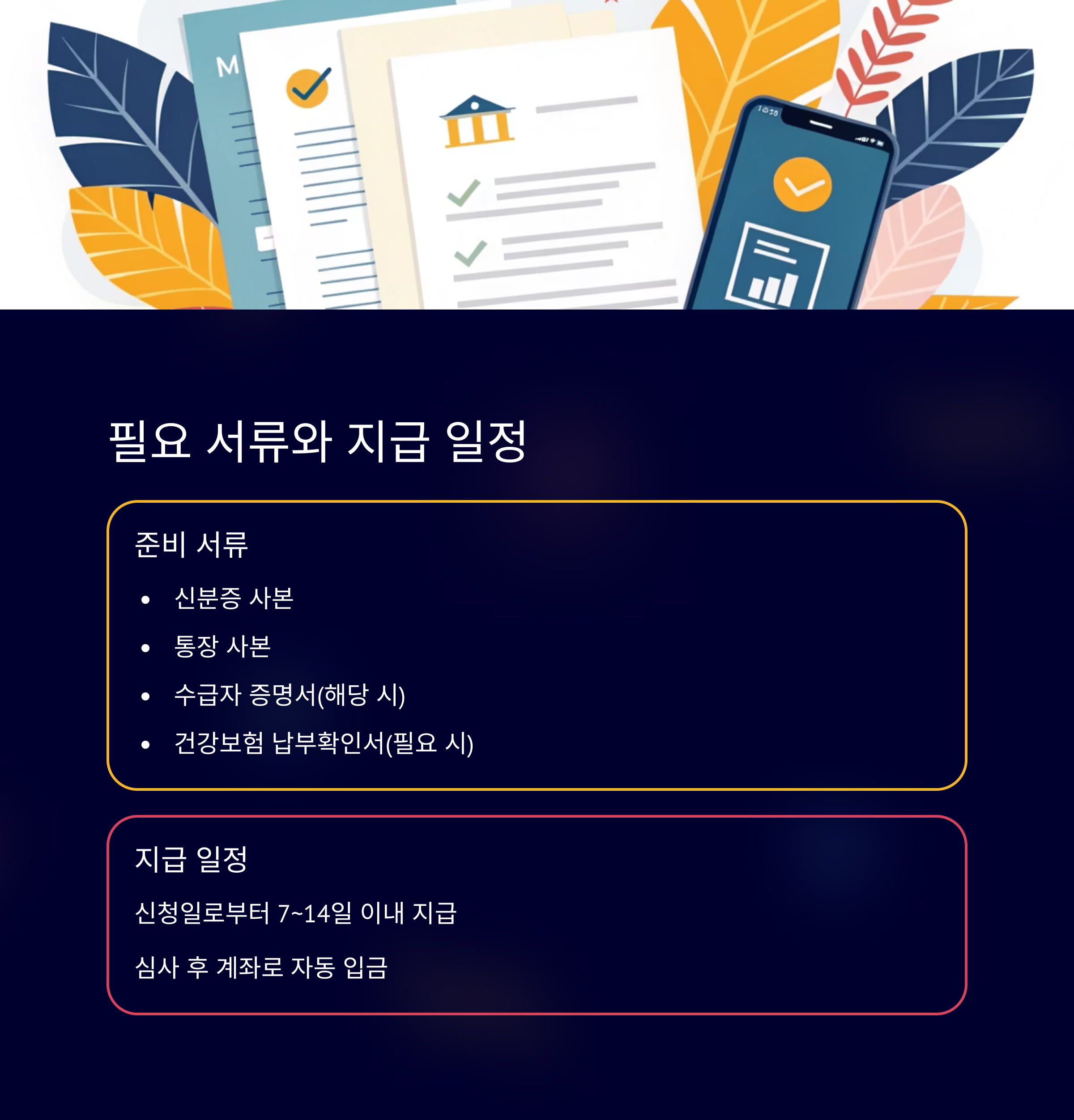 | 건강보험 납부확인서 | 소득 기준 증빙 (필요 시) |