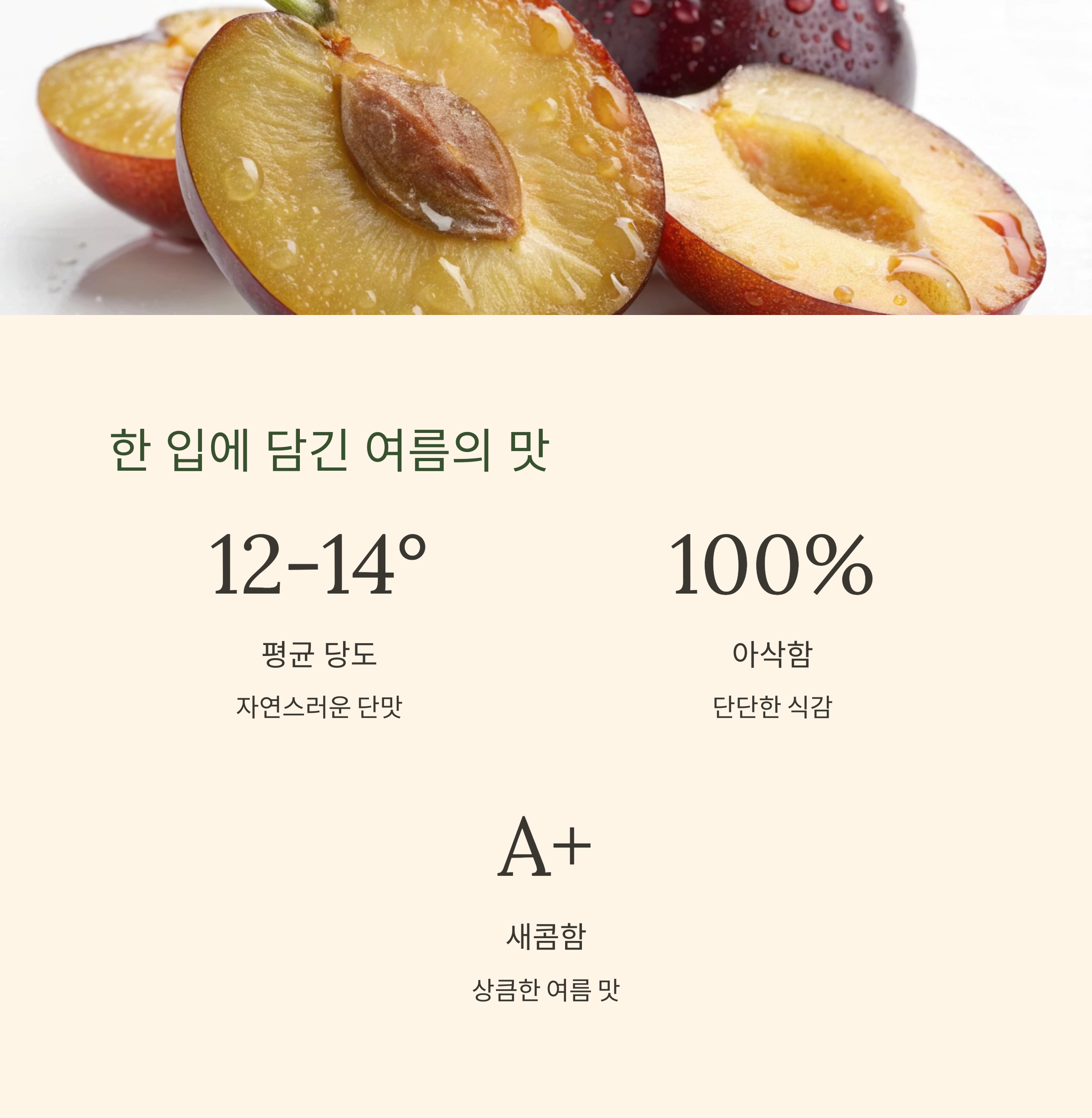 자두는 수분 함량과 당도가 높아 최상의 품질을 자랑하죠.
