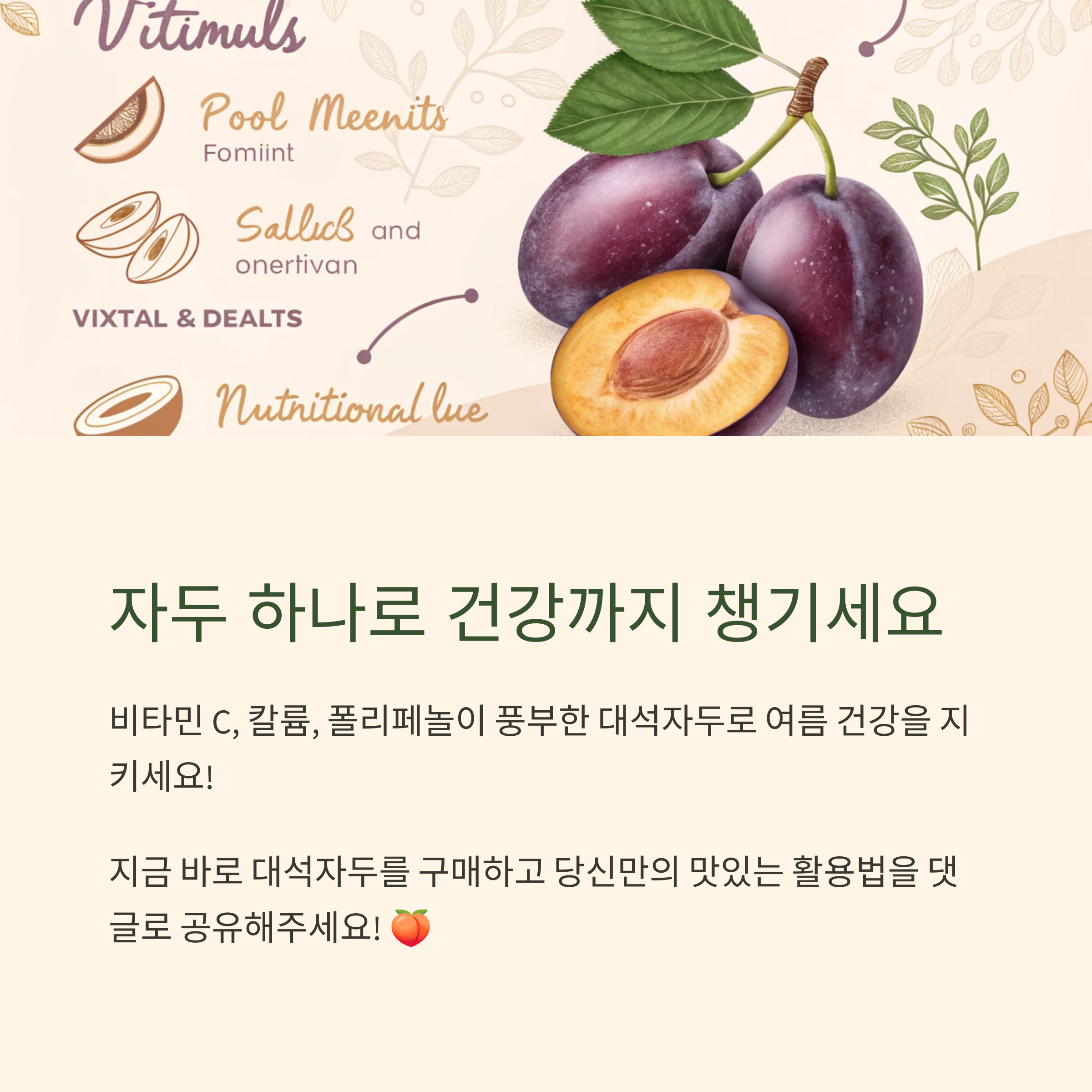 KBS '6시내고향'에서 소개된 대석자두가 화제를 모으고 있습니다. 여름이 시작되면 가장 먼저 출하되는 자두로, 상큼한 향기와 아삭한 식감, 그리고 입 안 가득 퍼지는 새콤달콤한 맛이 특징입니다. 산지에서 갓 따온 싱싱한 자두가 TV 속 농부들의 정성과 함께 소개되며 많은 시청자들의 관심을 끌고 있는데요. 이 글에서는 방송에 나온 대석자두의 특징부터 맛있게 먹는 방법까지 자세히 알려드립니다.