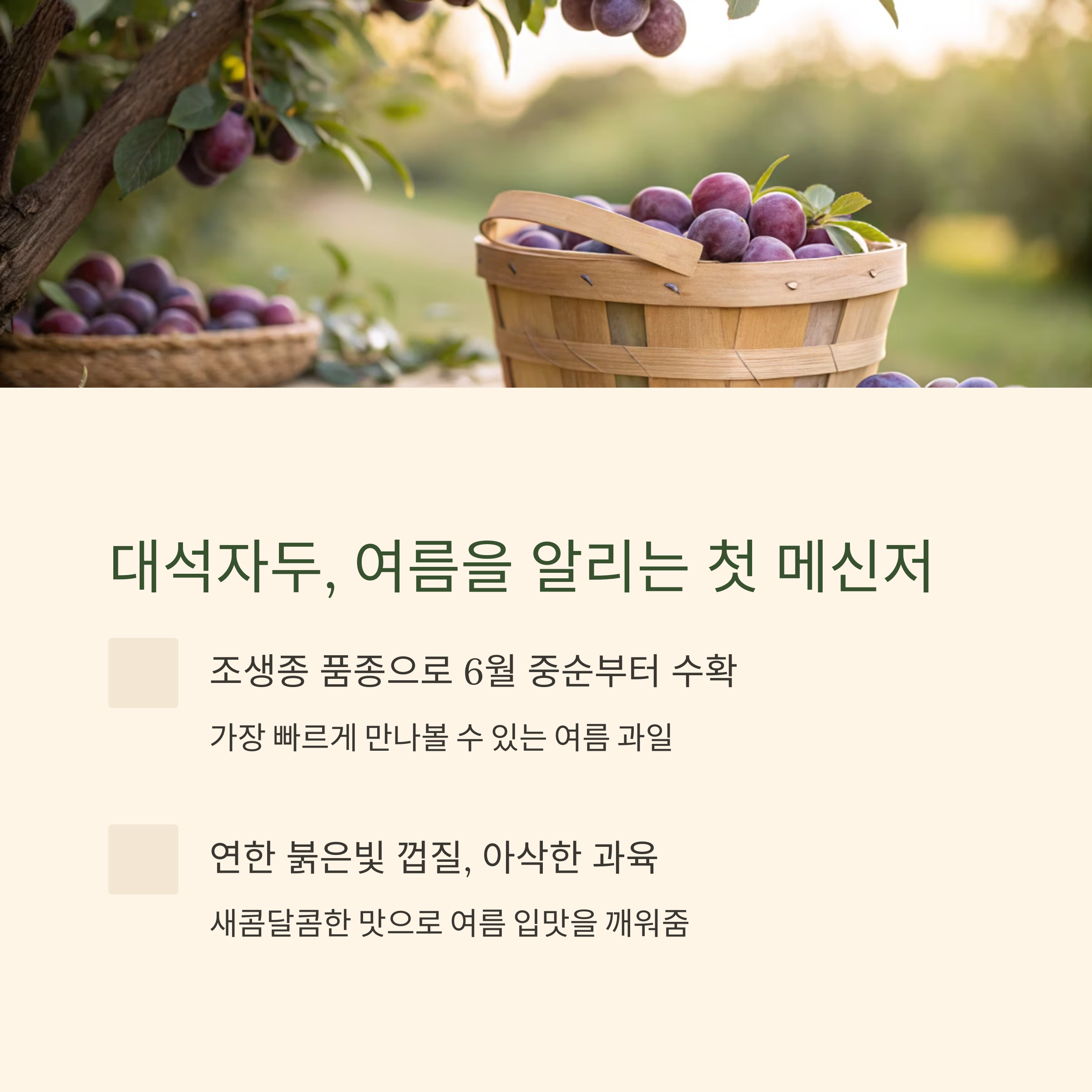 대석자두는 자두 중에서도 가장 빠르게 출하되는