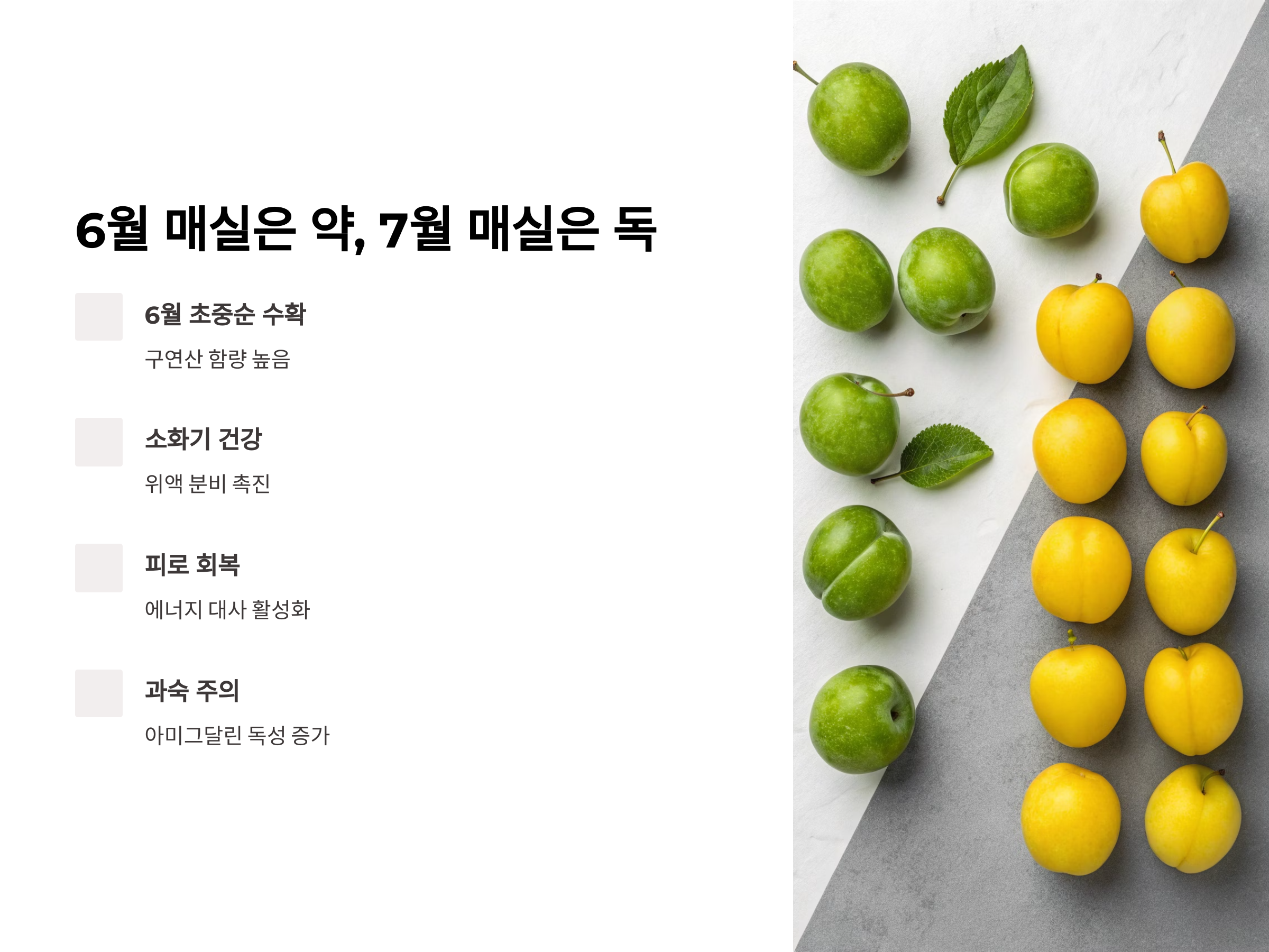 이번 글에서는 제철 매실이 몸에 좋은 이유와 활용법을 자세히 소개합니다.