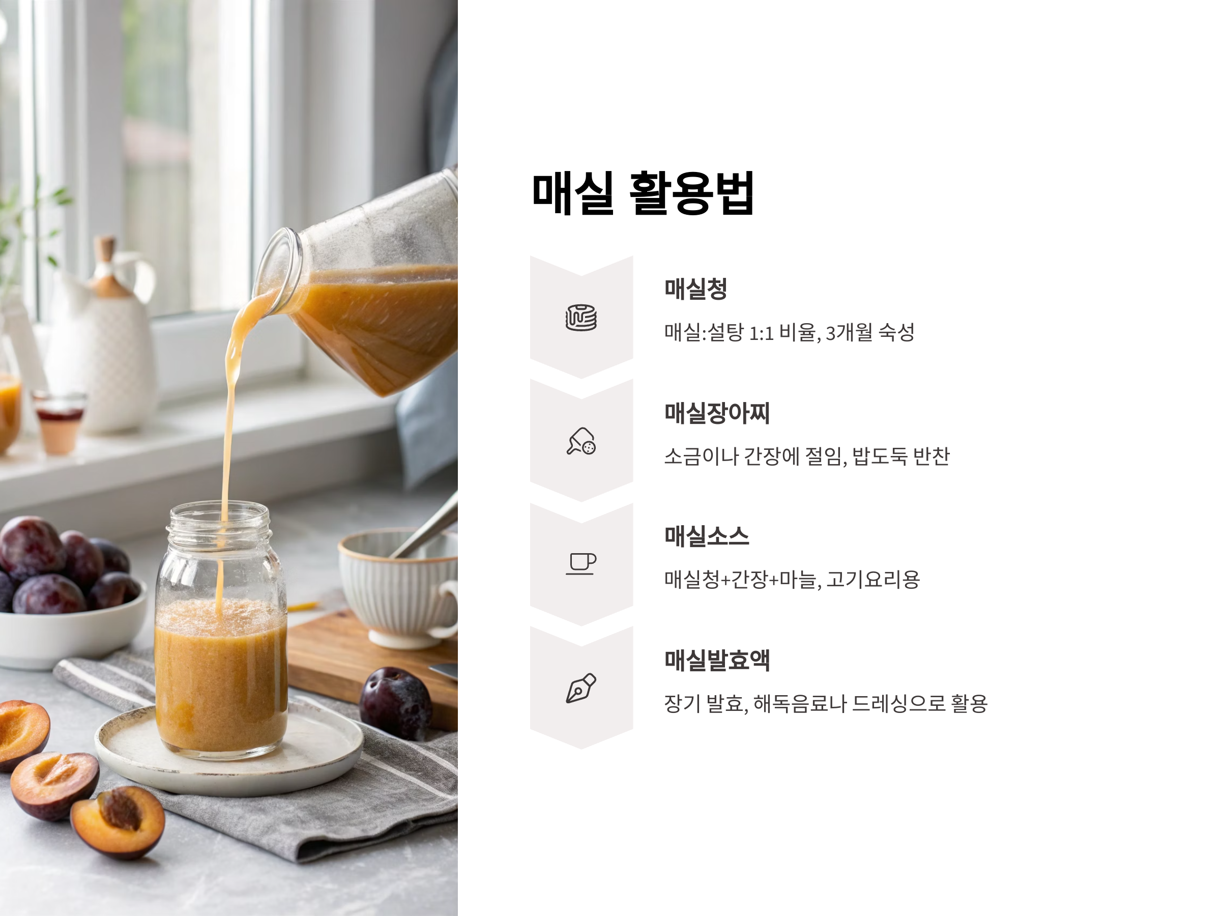 "매실청 한 스푼이면 더부룩한 속이 금세 풀려요"