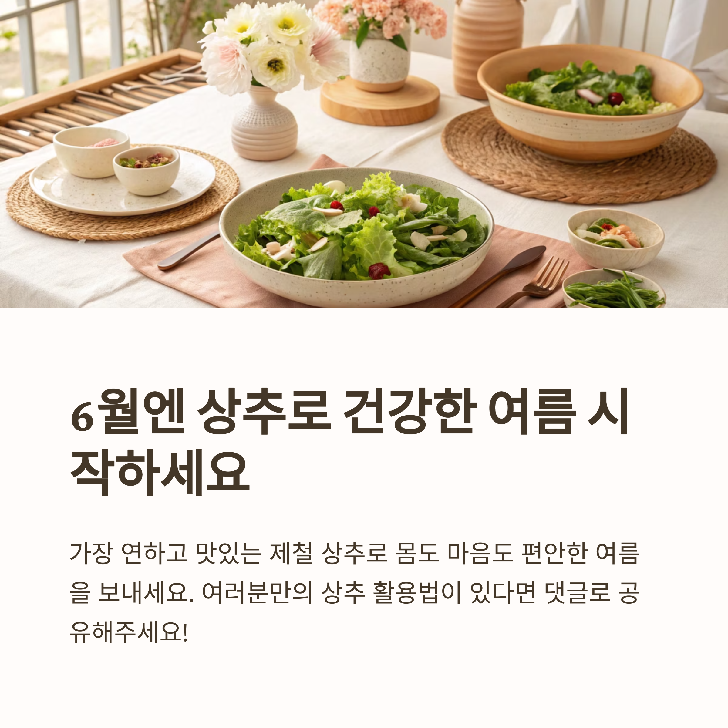 2025.06.01 - [분류 전체보기] - 6월 제철 식재료 20가지, 건강한 여름을 위한 자연의 선물