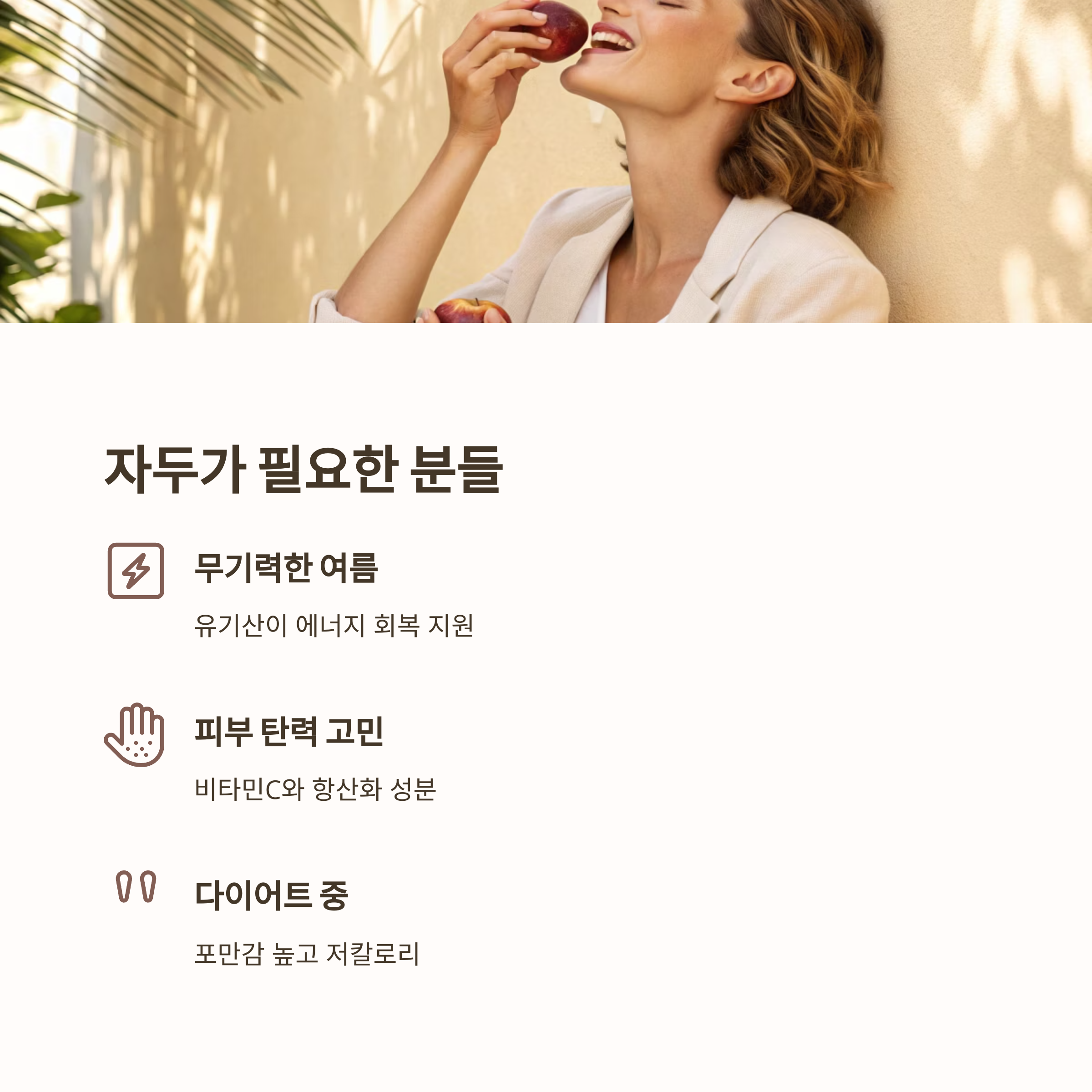 | 무기력한 여름 피로감을 느끼는 분 | 유기산이 에너지 회복 지원 |