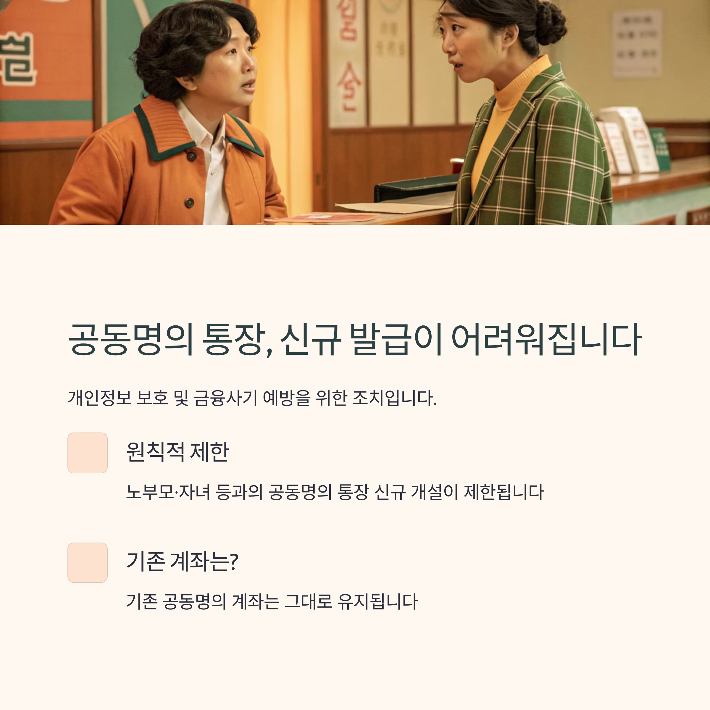 공동명의 신규 개설이 원칙적으로 제한됩니다.