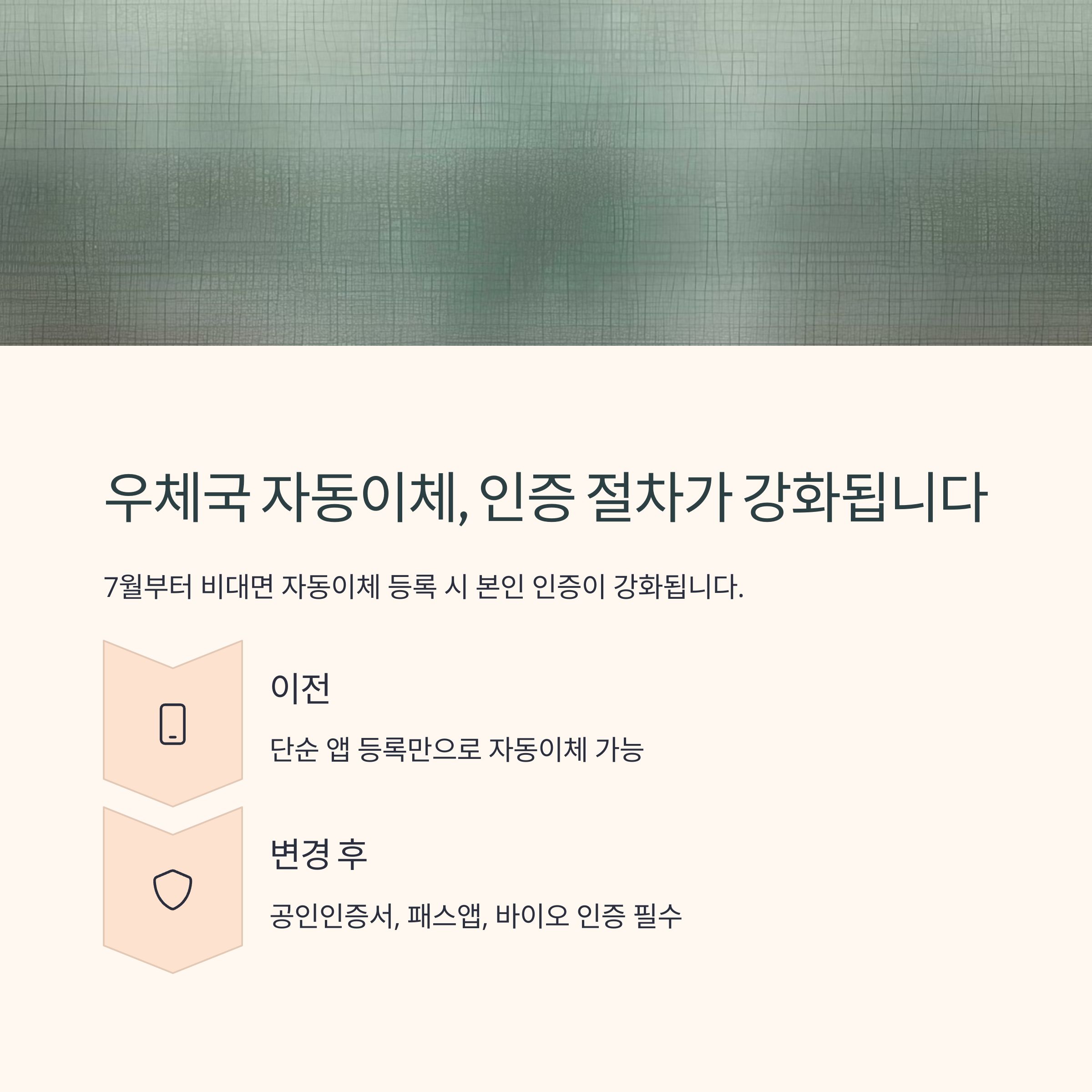 | 우체국 | 비대면 자동이체 인증 강화 | 2025년 7월 1일 |